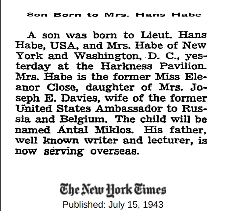 Son Born to Mrs. Hans Habe